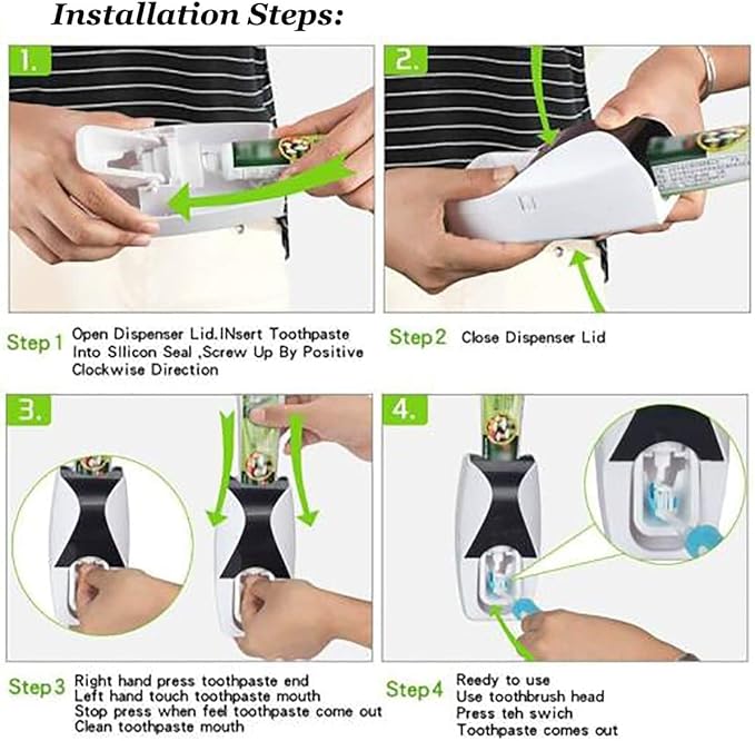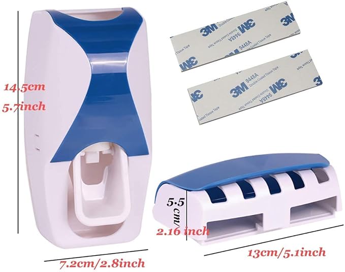 Variant: 1. Automatic Plastic Hands-Free Wall Mounted Toothpaste Dipenser Set Dustproof with 3M Sticky Suction Pad Wall Mounted Kids Hands Free Toothpaste Squeezer for Washroom (Multi-Color)