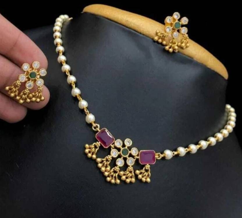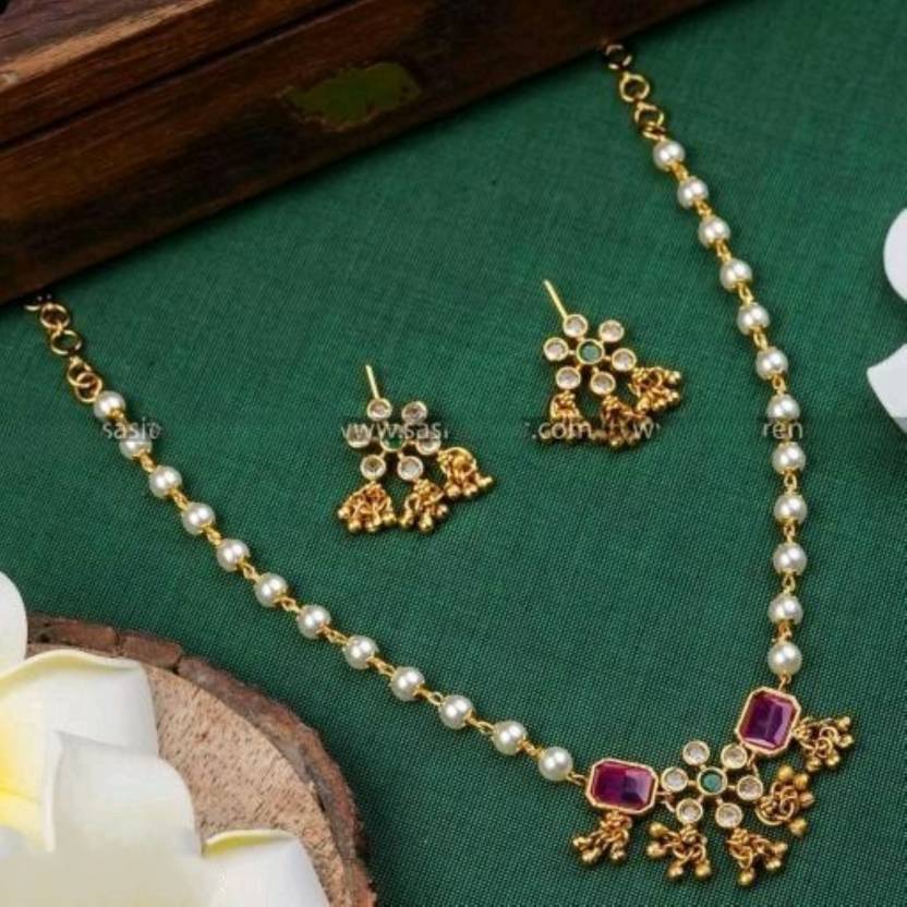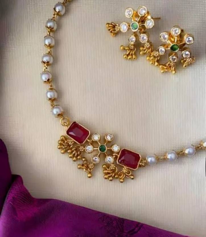 Variant: 1. Elegant Traditional Pearl Jewellery Set