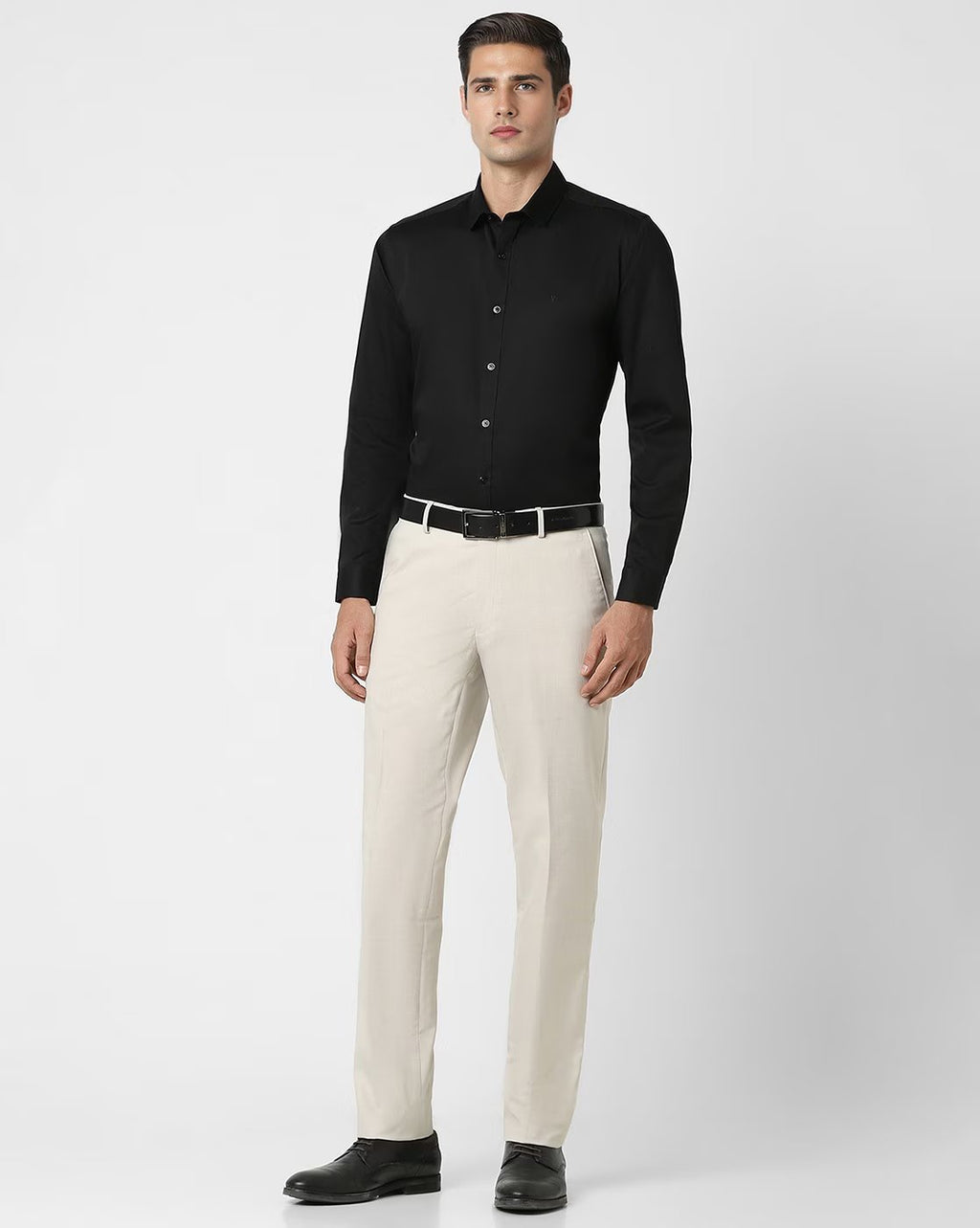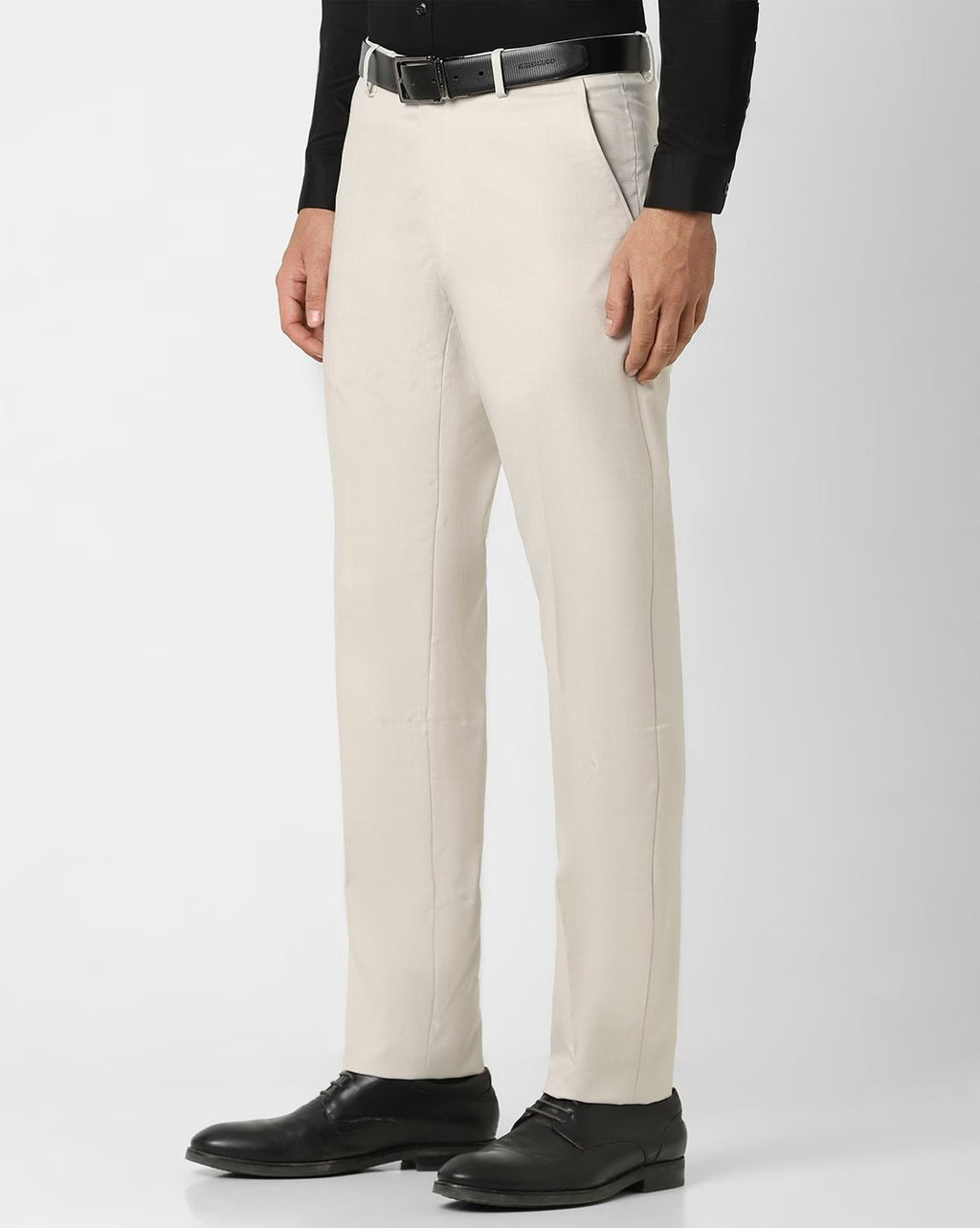 Variant: 1. Khaki Solid Mid-Rise Stretchable Men's Formal Trousers (SIZE- 30,32,34,36)