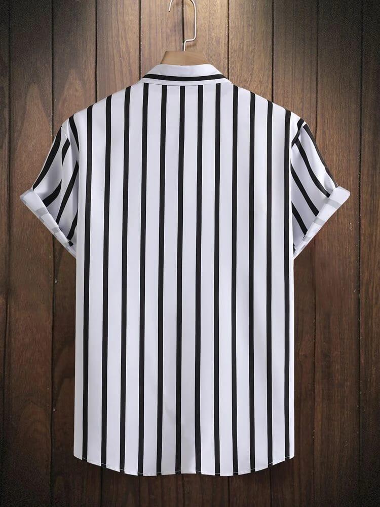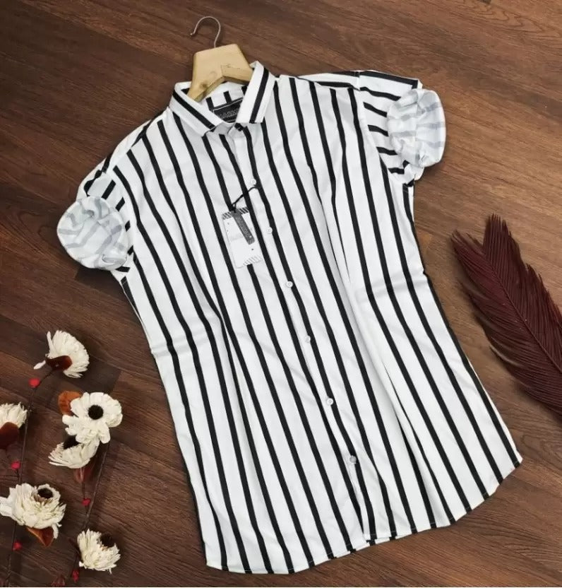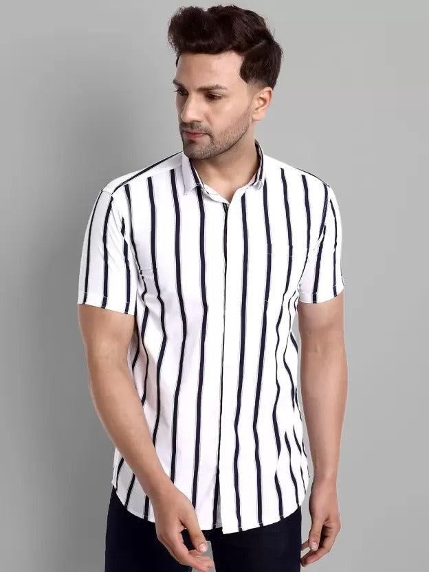 Variant: 1. Men Regular Fit Striped Curved Collar Casual Shirt