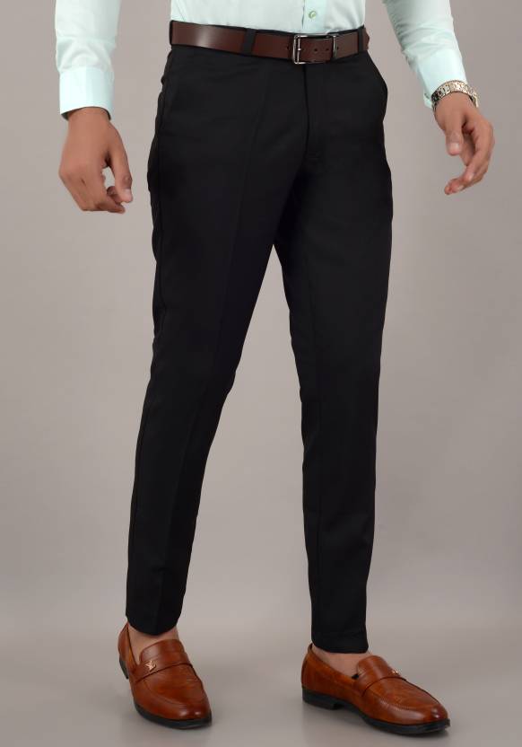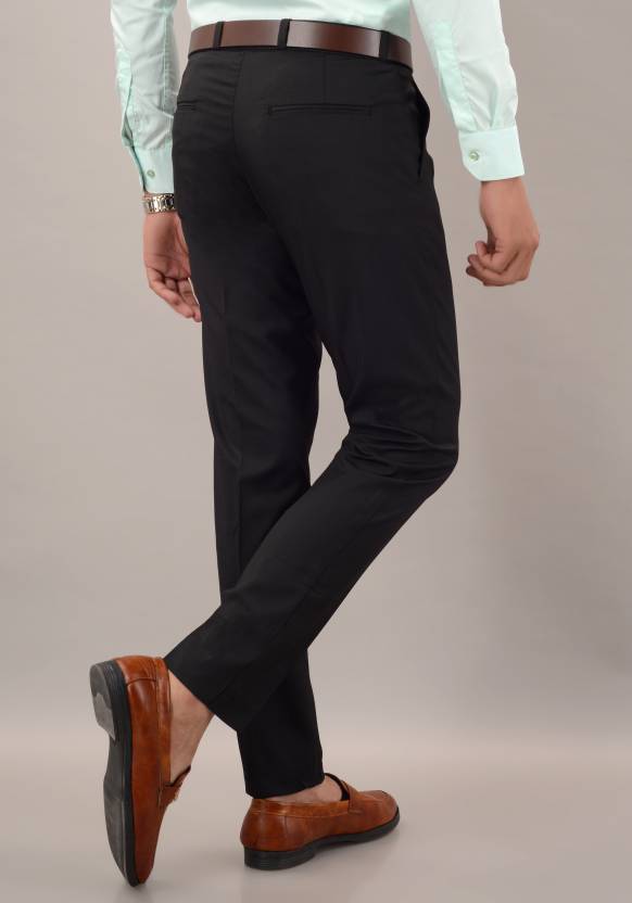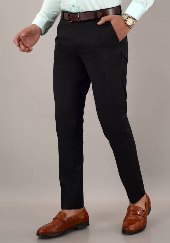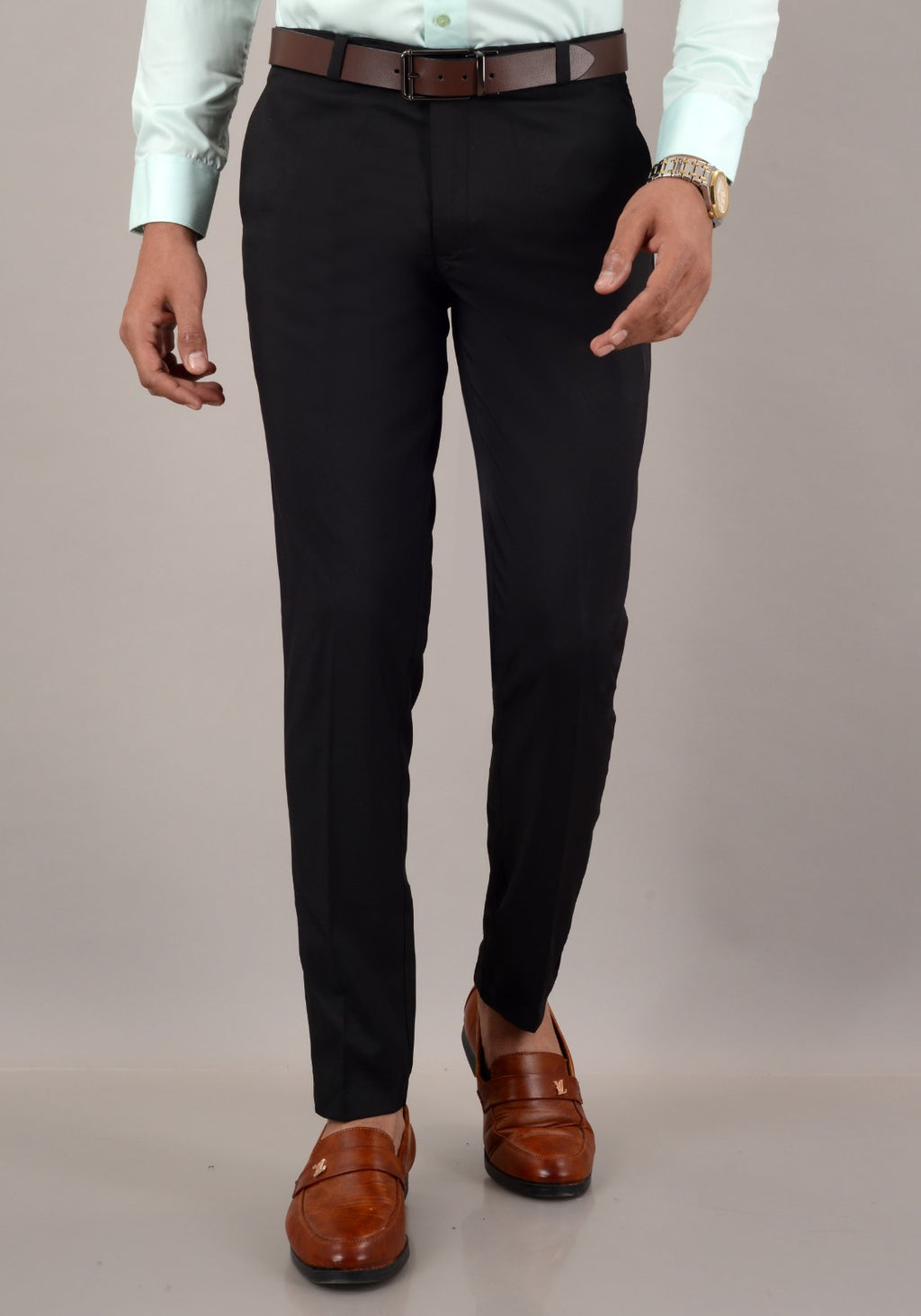 Variant: 1. Men Slim Fit Black Cotton Blend Trousers
