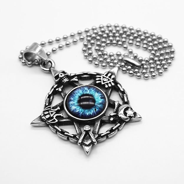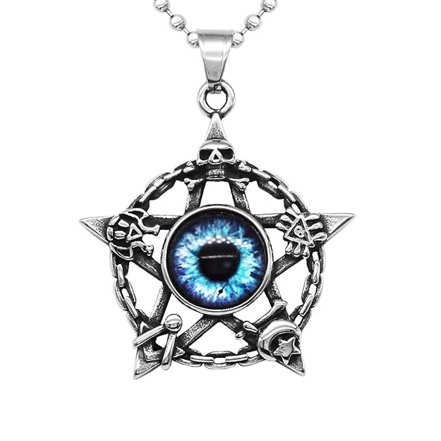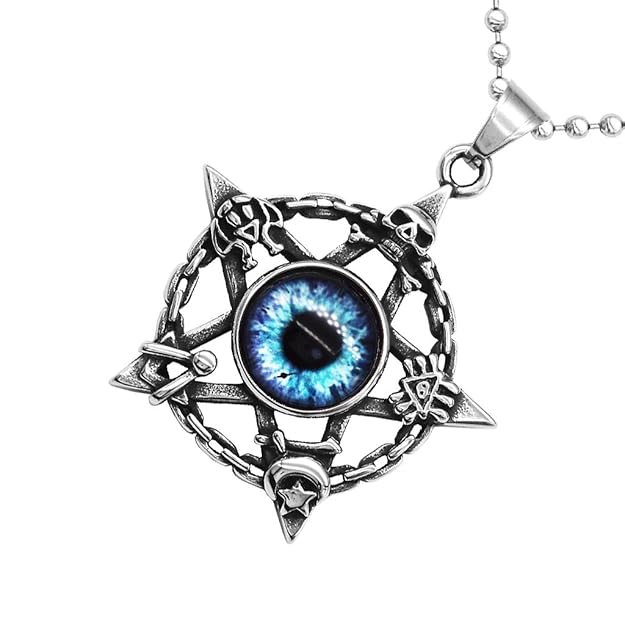 Variant: 1. Men Stainless Steel Pentacle Star Evil Eye Skull Pendant Necklace Blue Eye