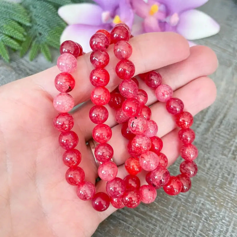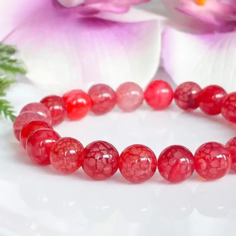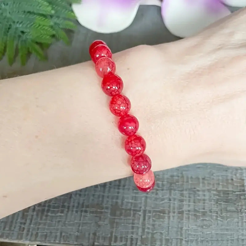 Natural Dragon Vein Agate Stone Red Beads Bracelet