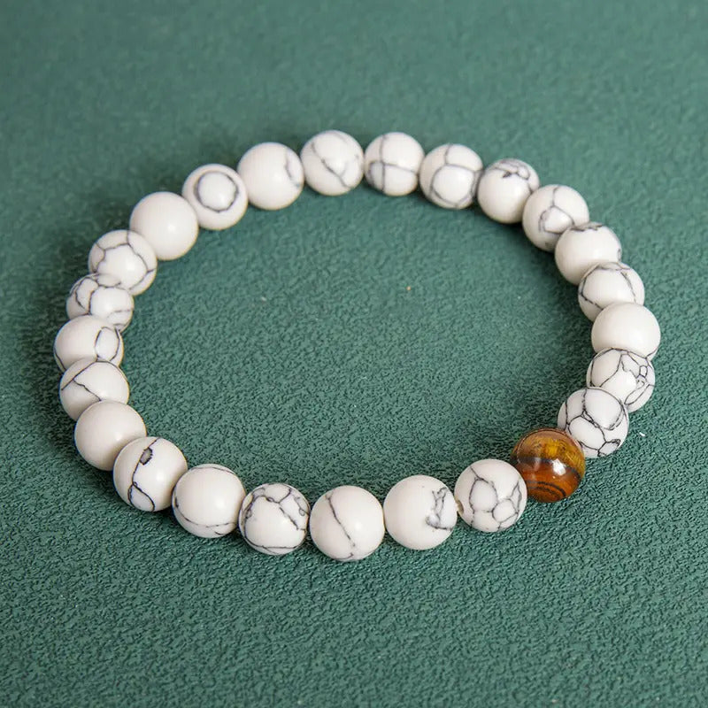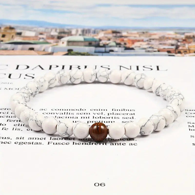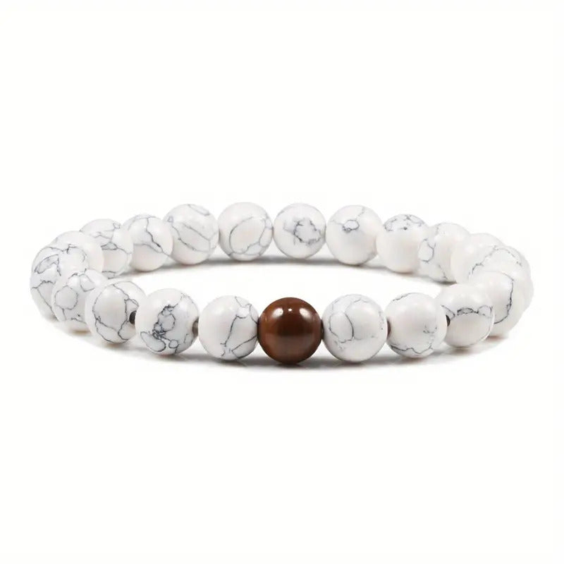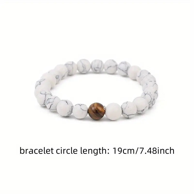 Variant: 1. Natural Gemstone Beads Stretch Bracelet, Midnight Stone, White, for Women, Men and Kids