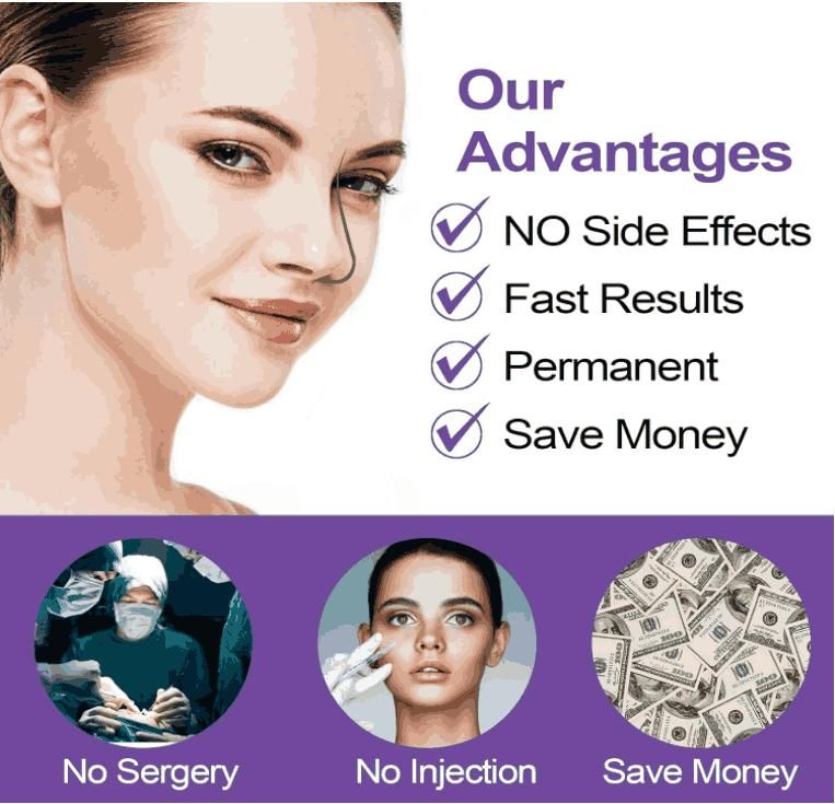 Product Features Used to sharpen the nose and achieve a higher nose bridge Clip it on the nose for about 10 to 15 minutes a day Do not overuse it for too long 2 sides can be adjusted to suit your nose Material plastic & Silicone