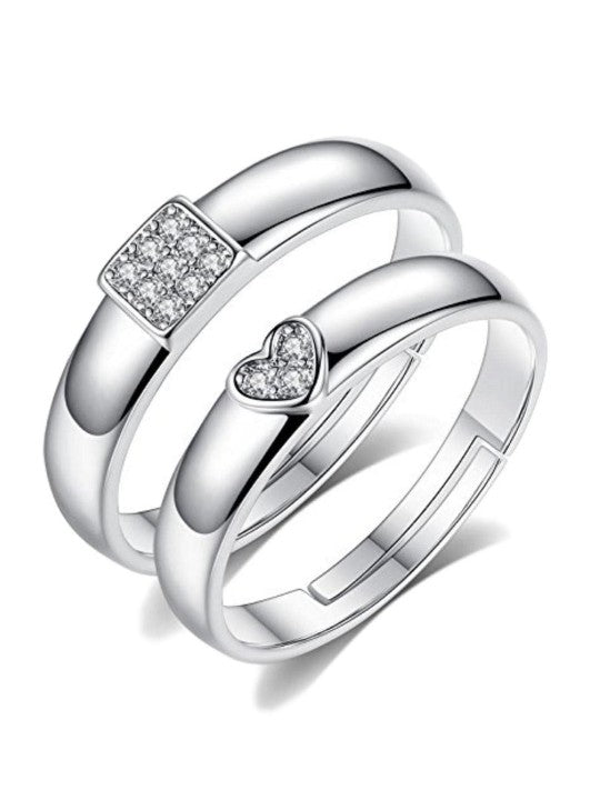 Silver-Plated Cubic Zirconia-Studded Adjustable Couple Rings