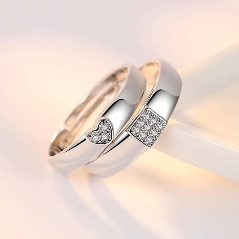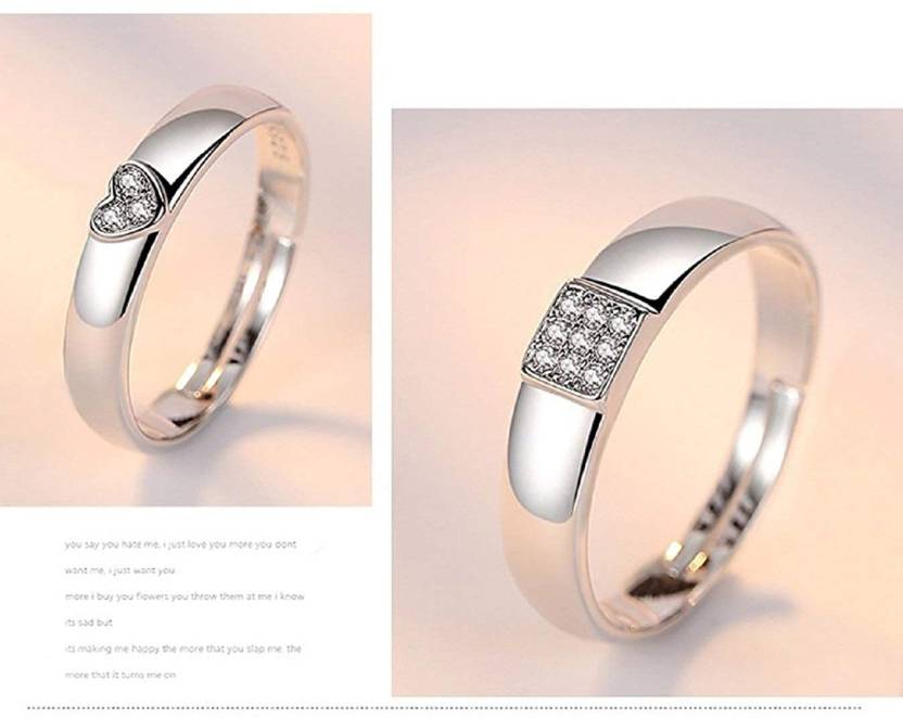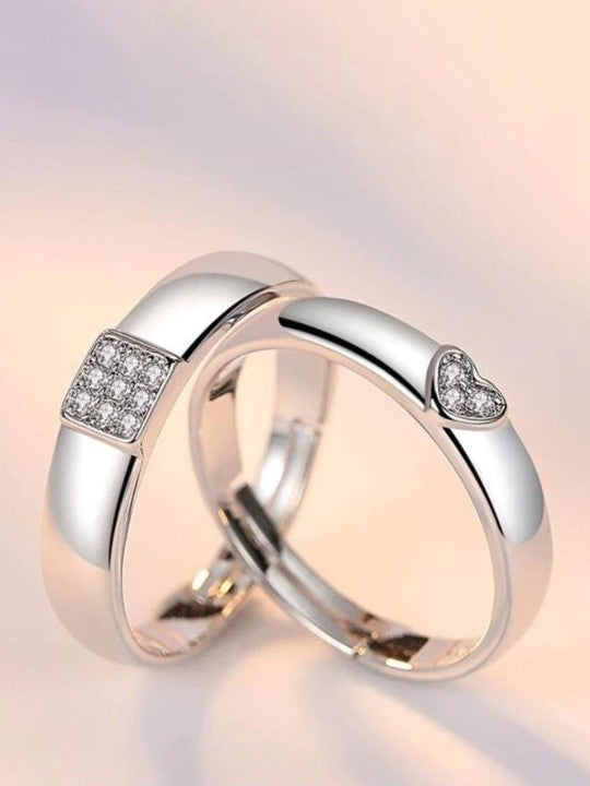 Variant: 1. Silver-Plated Cubic Zirconia-Studded Adjustable Couple Rings