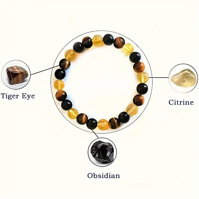 Wealth Bead Bracelet, Obsidian Tiger Eye Stone Bracelet Jewelry