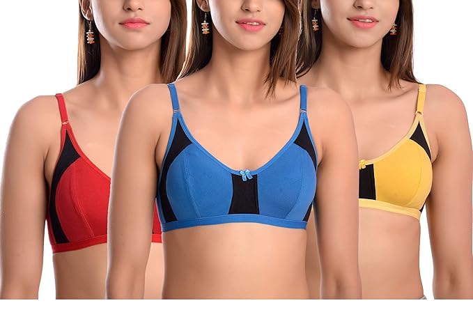 Women's Girls Seamless Non Padded Bra Multicolor ( Pack of 3 )