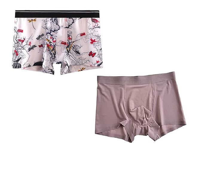Variant: 1. Men's Ultra Soft Material Ice-Silk Men's Shorts Underwear Men's Brief Boxer Free Size ( Pack of 2)