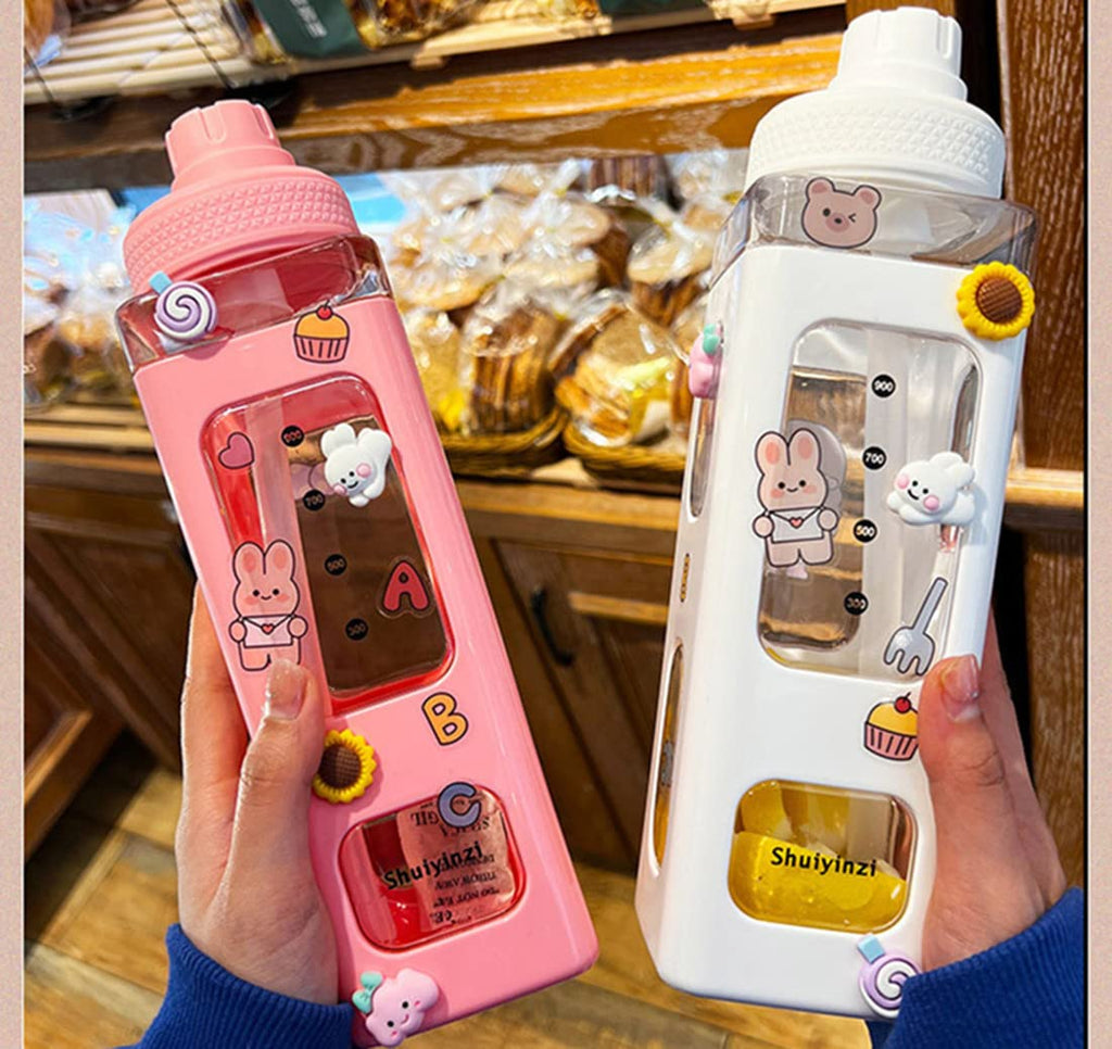 Kawaii Water Bottle with Lid and Straw (700 ml )