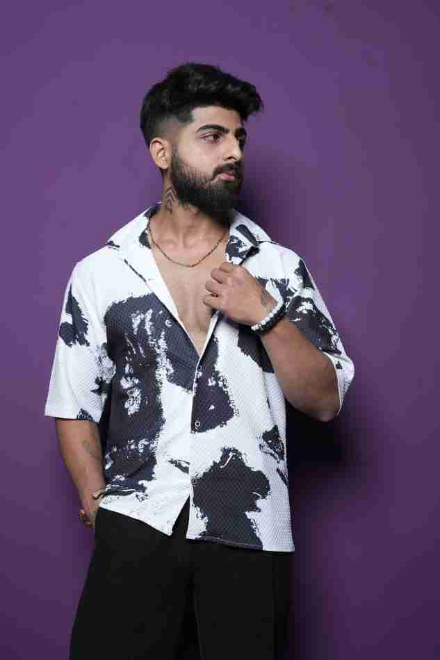 Men Regular, Super Slim Fit Graphic Print Lapel Collar Casual Shirt