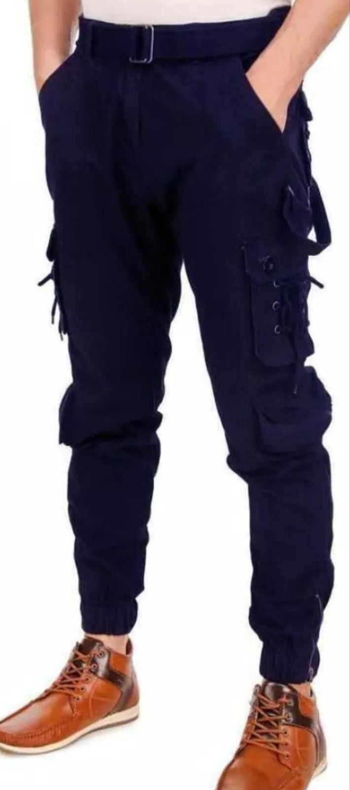 Variant: 1. Men's Solid Navy Blue Colour Cargo Pant
